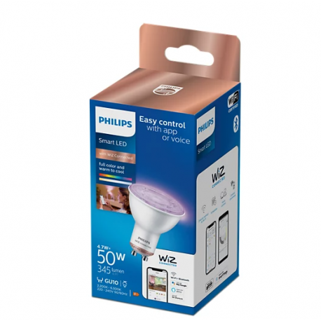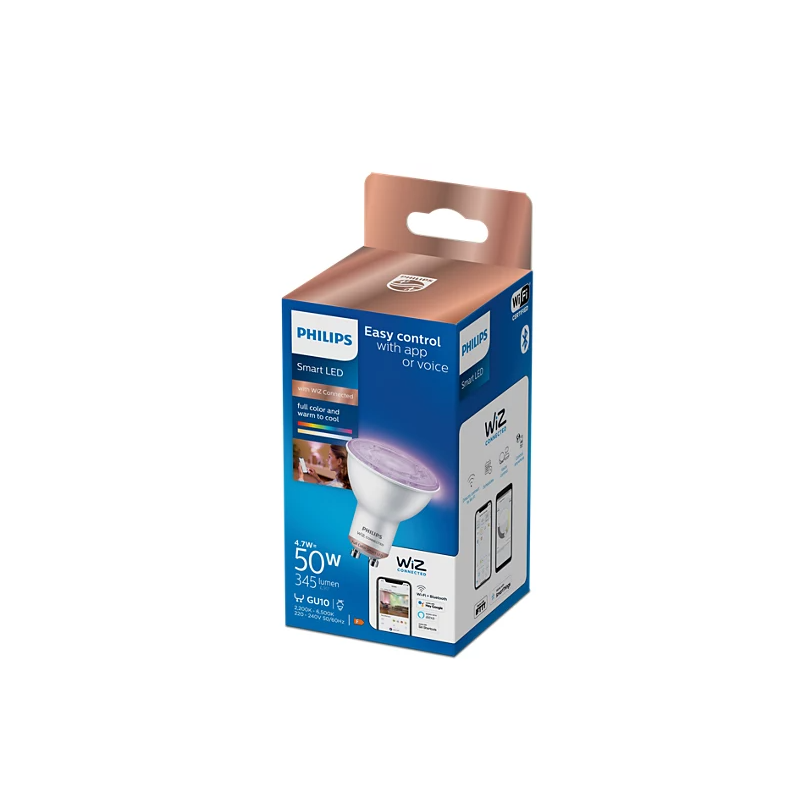 Inteligentna żarówka LED 4,7W GU10 sterowana aplikacją lub pilotem PHILIPS WiZ Connected 8719514372344