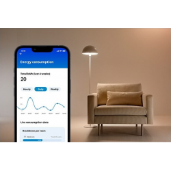 Ta inteligentna wtyczka Smart plug ma wbudowany miernik mocy, który monitoruje zużycie energii przez podłączone do niej urządzenie. Dowiedz się, ile energii zużywa Twoje urządzenie, patrząc na wizualne podsumowanie w aplikacji WiZ.