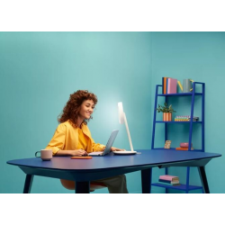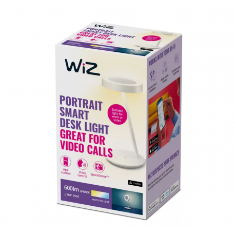 Jedno światło, mnóstwo zastosowań! Wielofunkcyjna inteligentna lampka biurkowa WiZ Portrait oferuje podwójne strefy światła, dzięki czemu sprawdzi się idealnie jako oświetlenie zadaniowe na biurku, oświetlenie do rozmów wideo, a nawet sprzyjająca relaksowi lampka nocna. Wystarczy obrócić lampę, aby przełączyć się z oświetlenia biurka na oświetlenie do rozmów wideo. Specjalnie zaprojektowany dyfuzor generuje pierścień miękkiego światła z możliwością regulacji, dzięki któremu będziesz świetnie wyglądać online. Wbudowany czujnik jasności wykrywa poziomy światła otoczenia i automatycznie dostosowuje oświetlenie zadaniowe, aby zmniejszyć zmęczenie oczu podczas długich godzin pracy. Proste i czyste linie pasują do każdego wystroju. Inteligentna lampka biurkowa Portrait dobrze współpracuje z innymi lampami w ekosystemie WiZ, zapewniając łatwe sterowanie, którego oczekujesz. Użyj aplikacji WiZ, pilota WiZmote lub własnego głosu, aby stworzyć idealną atmosferę w dowolnym miejscu w domu.